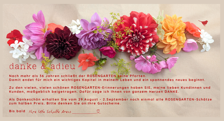 Ganz, ganz herzlichen Dank an Sie für die unglaublich liebevolle und so herzliche Verabschiedung in den letzten Öffnungstagen!